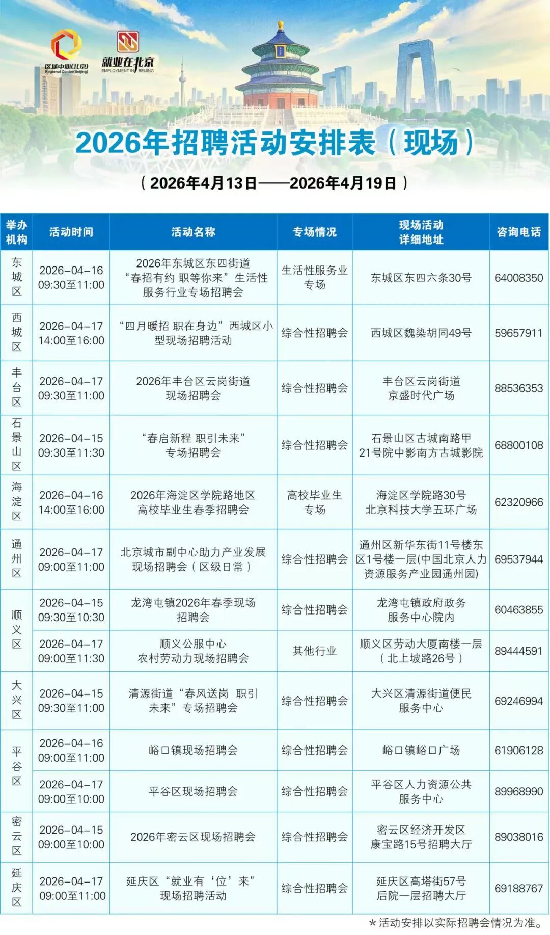 北京近一周现场招聘会